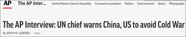 “不幸的是,今天我们只有对抗。”古特雷斯说。他表示,重建中美关系有助解决疫苗接种、气候变化,以及其他全球性的挑战。