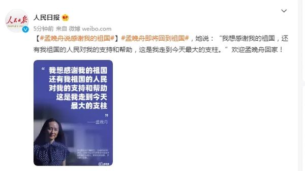 此前报道:孟晚舟即将回到祖国