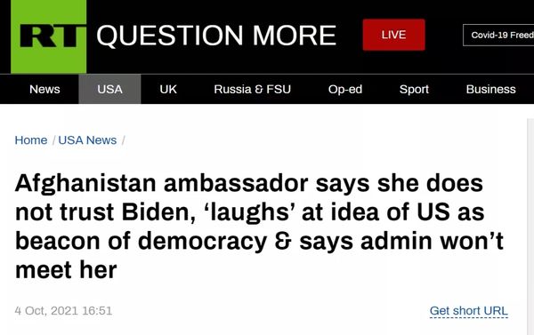 RT: “阿富汗大使”说她不信任拜登,嘲笑美国是民主灯塔的说法,并说(美)政府不会见她