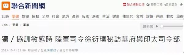 台湾“联合新闻网”报道,据了解,徐衍璞带着“陆军司令部”军情、战训、计划处处长与传译多人,共一个上将、两个少将与五个上校,9日登机外出,主要行程是前往华盛顿参与年度固定的美国陆军协会年度会议兼展览会,期间并将与美国国防部高层见面。