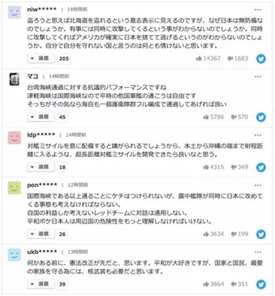 还有人借机鼓噪日本应发展军备:“要是在岛上部署对舰导弹的话肯定会被反对,所以应该开发将日本本土到冲绳都纳入射程范围的超长射程对舰导弹。”