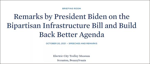 根据美国白宫网站公布信息,美国总统拜登在20日来到了宾夕法尼亚州斯克兰顿,并在当地的电动城市电车博物馆发表演讲,向民众兜售他的基建计划和社会福利预算案。