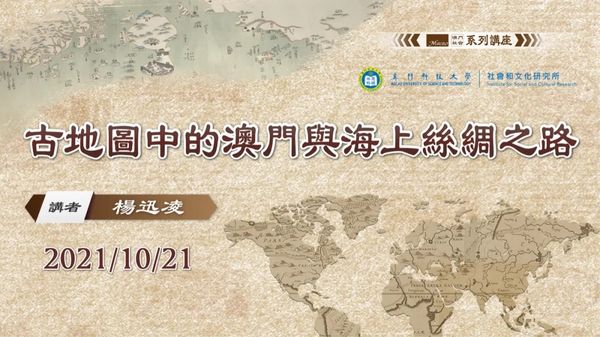 10月21日下午,由澳門科技大學社會和文化研究所及通識教育部主辦的2021/2022學年第3場“澳門社會”系列講座,邀請大學圖書館楊迅凌副館長線上主講“古地圖中的澳門與海上絲綢之路”。