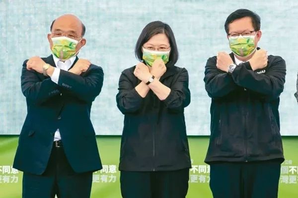 公投说明会,蔡英文、苏贞昌等轮番上台,继续搬出所谓“抗中保台”戏码。(图/台湾《联合报》)