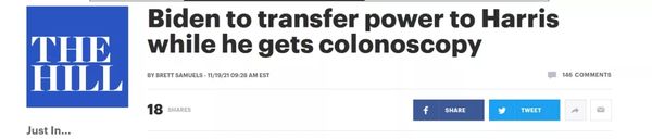 美媒:拜登周五将权力短暂移交给哈里斯,原因是做健康检查需麻醉美国《国会山报》刚刚消息,白宫新闻秘书普萨基称,在拜登周五接受常规结肠镜检查麻醉期间,他将暂时将权力移交给副总统哈里斯。……