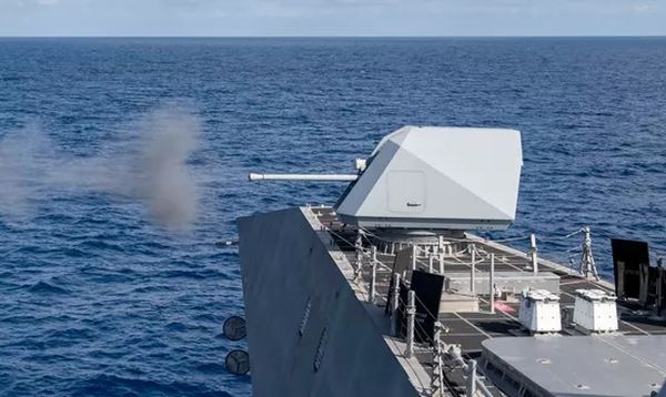 ▎7月,美国海军“查尔斯顿”号濒海战斗舰在南海进行实弹射击演练