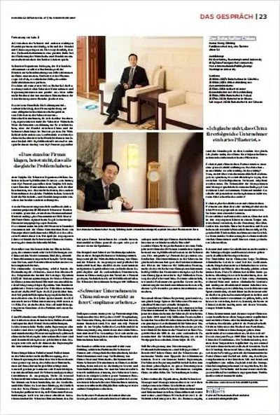 中国未来发展孕育巨大机遇。希望在华瑞士企业充分利用中国深化改革、扩大开放红利,取得更好经营业绩,为促进中瑞两国经济发展、提升两国人民福祉作出贡献,成为沟通两国文化,使两国人民深化了解的桥梁。前提是,瑞士企业要遵守中国的法律法规。