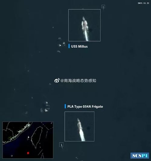 南海战略态势感知平台23日在其官方微博账号上发布题为“美军舰穿越台湾海峡,年内第11次”的文章称,11月22日10时许,Planet卫星在台湾海峡南口发现美海军“米利厄斯”号驱逐舰自南向北穿越海峡,中国人民解放军1艘054A型护卫舰对其进行跟踪监视,态势尽在掌握。