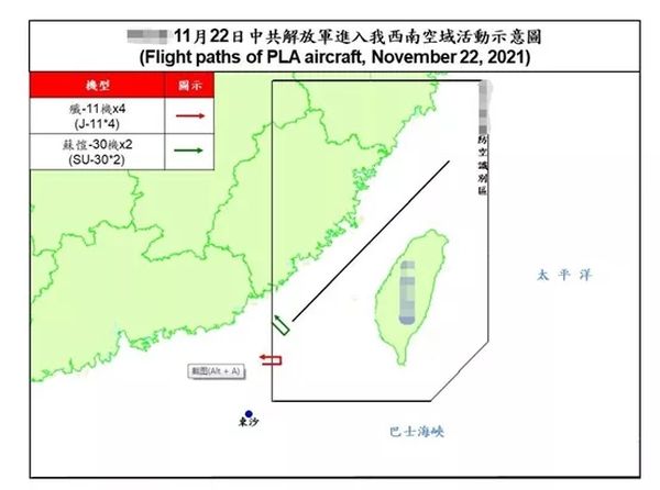 而中国空中力量也没有让美军侦察机舒舒服服地抵近侦察。台湾防务部门22日发布“即时军事动态”称,6架次解放军军机22日进入台湾“西南防空识别区”。其中包括4架次歼-11、2架次苏-30。台防务部门23日再次发布通报称,当天4架次歼-16战机巡航台相关空域。
