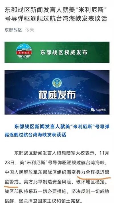 东部战区23日在其微信公众号上发布的最新回应