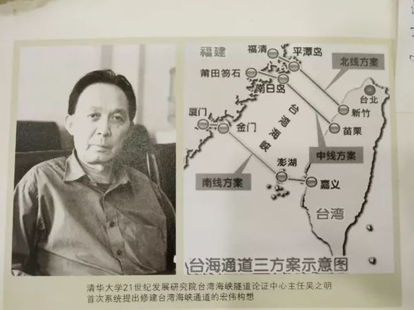 清华大学土水学院退休教授, 21世纪发展研究院台湾海峡通道论证中心主任吴之明在接受《环球时报》记者专访时介绍说,几十年来在对“台海通道”构想和不断地探讨中一共产生了北线、南线和中线等多𠆤方案。