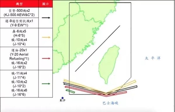 台媒称,28日解放军飞行动态中,12架战斗机(包括歼-10/11/16)只是稍稍进入台识别区西南角,真正引人瞩目的是三个编队,均穿过巴士海峡到台湾东南方才返航。一个编队是空警-500预警机与运-8电战机各1架,第二个编队是5架轰-6与4架歼-10,第三个编队由1架运油-20与2架歼-16组成。其中飞得最远的,是轰-6与歼-10组成的第二编队,折返点已经位于东经123度以东,在台方的防空识别区边线之外。