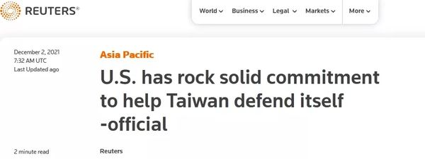 路透社称,克里滕布林克是美国负责亚洲事务的高级外交官。不止是克里滕布林克,近来美国的部分政客官员,频频拿台海议题鼓噪煽动,大放厥词。中方已多次严正警告,国台办发言人朱凤莲11月26日表示,我们敦促美国会一些人慎重处理台湾问题,停止怂恿、支持“台独”分裂活动,停止打“台湾牌”和煽风点火,否则只会给台海和平稳定造成进一步损害。