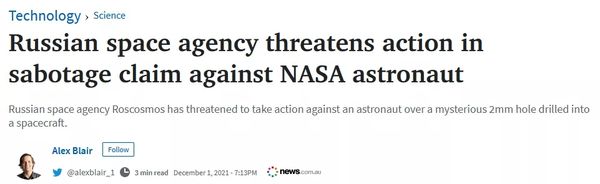 据美媒当地时间1日报道,经过三年调查,俄罗斯联邦航天局近日宣布,此次“漏气事故”确认是一名美国宇航员故意为之,为的是引发事故以便能早日返回地球。