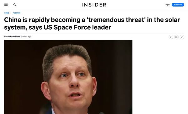 如下图所示,美国《商业内幕》网站就在其最新一篇报道中毫不遮掩地写到,美国太空军将领表示中国正在快速成为“太阳系”的“巨大威胁”。