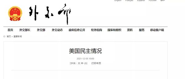 中国外交部5日发布《美国民主情况》报告,这是北京连续两天公开阐述中方对民主的看法,回敬美方的攻击。中方在美方挑衅性召集所谓“民主峰会”前夕采取上述行动备受关注,形成中美围绕民主的激烈争论。