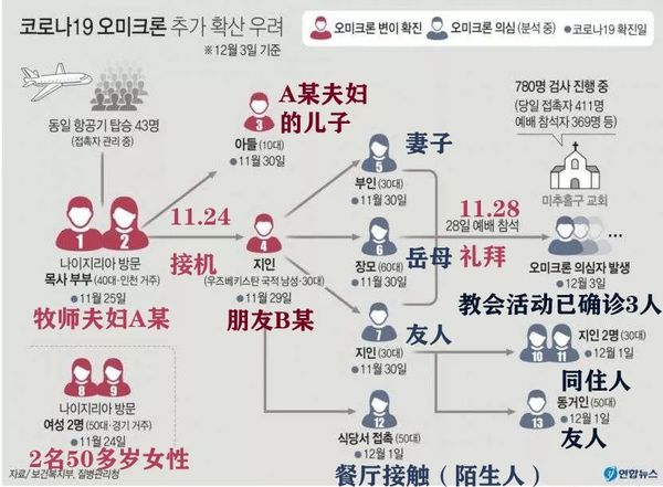 此外,与A某夫妇最早同批确诊感染O株的,还有京畿道高阳市2名50多岁的女性。两人均未接种疫苗,11月13日至22日结伴访问尼日利亚,23日归国入境后的第2天确诊感染。