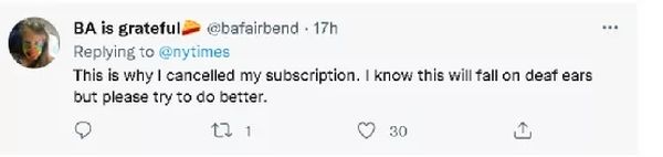 一些《纽约时报》的读者甚至选择通过“取消订阅”的方式抗议起了该报这种极为低级的做法。