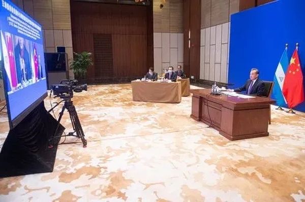 会晤前,王毅视频会见了尼加拉瓜政府代表团。