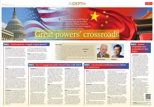 米:我们的观点并不矛盾。的确,美国通过接触政策帮中国融入高度全球化的经济,使其富有、强大。中国也很好地抓住机会。但最终结果是中国成为美国的竞争对手。这就是为何我在2001年预测如果中国经济持续强劲增长,两国关系很可能陷入一种糟糕的局面。