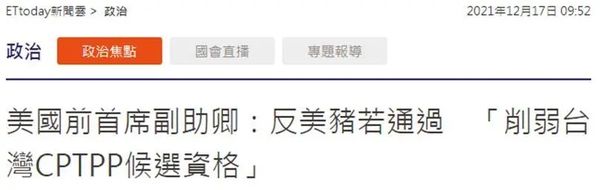 果然开始威胁了,美前官员宣称“反莱猪”若通过可能削弱台湾参与CPTPP资格