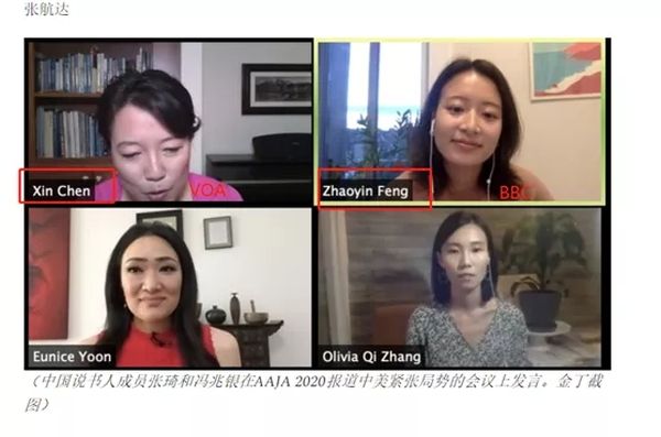 其成员,还包括《纽约时报》作者,曾断章取义抹黑石正丽的秦颖(AmyQin)、BBC记者冯兆音,以及在香港反修例风波期间给暴徒洗地的方可成。