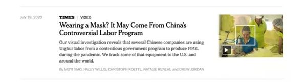 尤其是,她还“颇具创意”地炮制了一篇报道说,中国产的口罩是新疆“强迫劳动”来的。