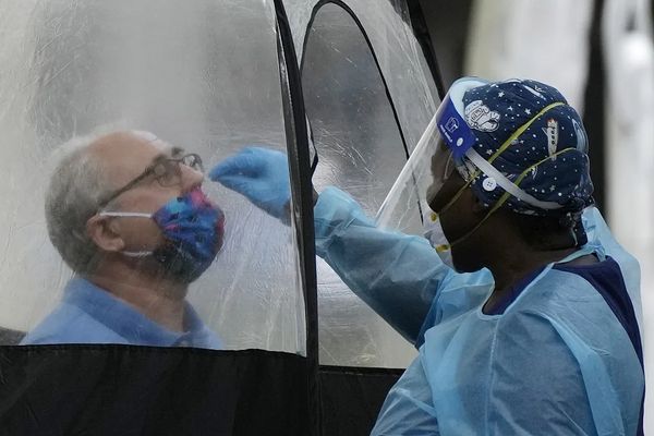 当地时间2021年12月28日,美国迈阿密市中心,民众接受新冠检测。