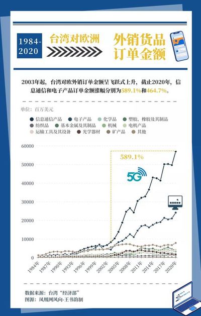 从2003年起,台湾对欧外销的信息通信和电子产品订单金额大幅上升。今年10月20日,欧洲议会通过了第一份专门针对台湾地区所发布的立场文件——“台湾欧盟政治关系与合作决议”(不具备法律效益),其中多次提到技术合作,特别是电动汽车、机器人、智能制造和半导体、5G 芯片。欧盟表示,自己这方面存在一定脆弱性,需要绿色数字转型。欧盟认为台湾拥有高科技产业基地,可为其提供许多经济和科学合作机会。