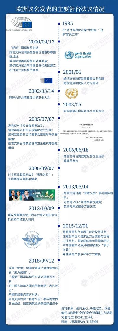 与对台政策总体上基于经济考虑的欧盟委员会和欧盟理事会不同,欧洲议会在对华政策上扮演着"白脸"角色,侧重从政治角度考虑问题,是欧盟内部支持台湾的主要力量。自20世纪80年代中期起,欧洲议会就多次通过偏袒台湾的决议。