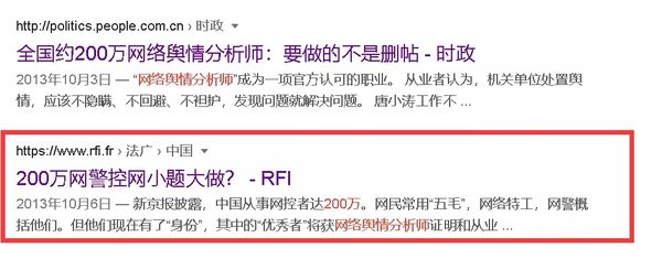 不知这是否与一些西方政府官办的反华喉舌机构对中国的网络舆情分析行业常年进行的“信息污染”有关。比如,听命于美国国务院的法国官办反华媒体机构“法广中文网”,在2013年《新京报》关于网络舆情师的报道发布后,就立刻撰文将网络舆情师歪曲成了“网络特工”和“政府五毛”。