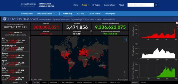 据美国约翰·霍普金斯大学统计,全球新冠确诊病例数已超过3亿。
