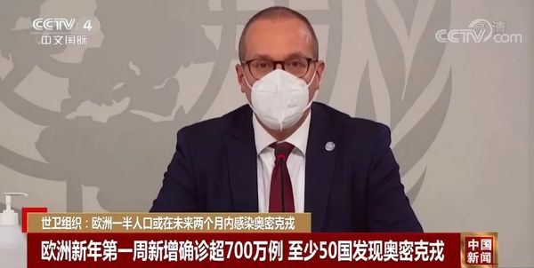 世卫组织欧洲区域主任克吕热11日对媒体说,2022年第一周,欧洲区域新增新冠确诊病例超过700万例,较两周前数据翻了一番。世卫组织欧洲区域办事处覆盖53个国家,其中已有至少50国发现奥密克戎毒株。克吕热说,据美国华盛顿大学健康指标与评估研究所推算,按现有传播速度,整个欧洲区域将有超过50%的人在未来6至8周内感染奥密克戎毒株。
