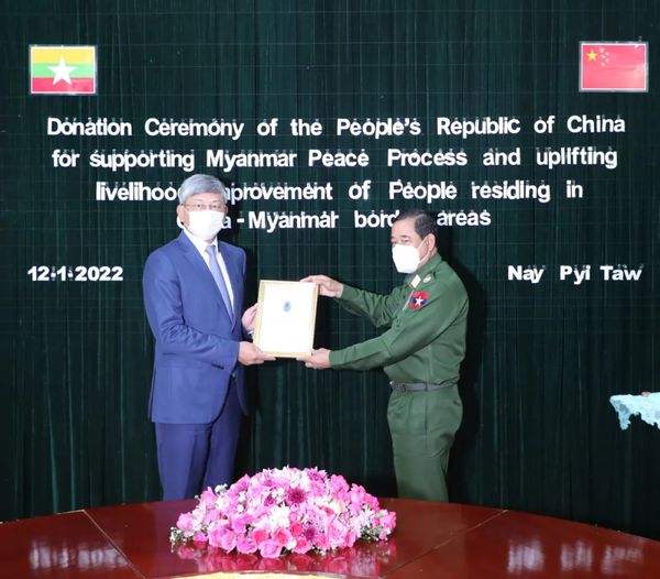 近日,中国政府向缅甸和平进程捐款仪式在内比都举行。中国驻缅甸大使陈海分别向缅甸三级和平机构、联邦停火监督联合委员会代表雅毕中将,社会福利与救济安置部部长岱岱楷,边境事务部部长吞吞楠转交年度援款,……