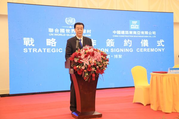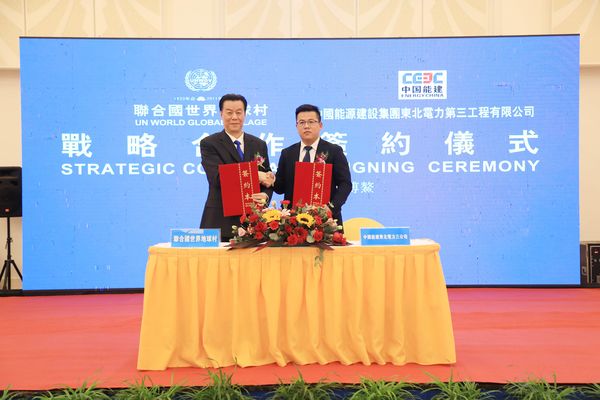 2022 年 1 月 11 日,联合国世界地球村在中国博鳌与中国建 筑东南亚有限公司,中国能源建设集团东北电力第三工程有限公司举行了隆重的战略合作签约仪式。