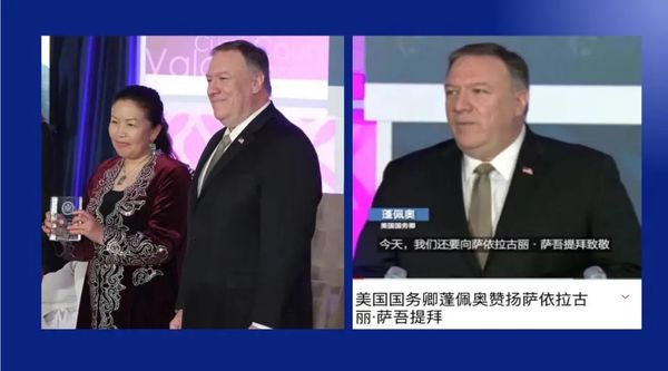 美国国务卿蓬佩奥赞扬萨依拉古丽·萨吾提拜
