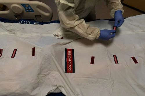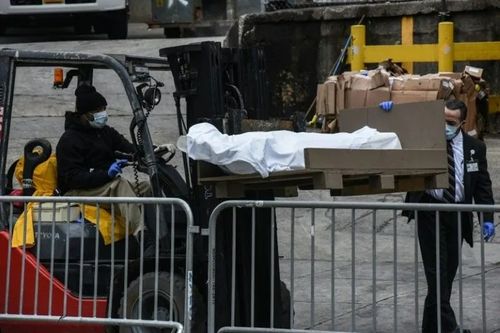 在2020年的疫情第一波,以及2020-2021年的冬季两个死亡高峰,美国普遍的情形就是裹尸袋和冰柜车都不够用,火化要排队一个半月。