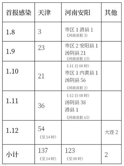 截至1月12日14时,天津本轮疫情共报告阳性感染者137例,其中确诊病例76例(轻型50例,普通型26例),无症感染者17例,其它44例待分类。