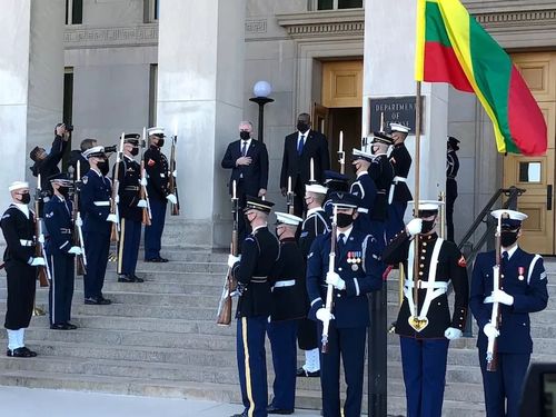 立陶宛防长(中左)和美国防长会面。来源:美国防部网站