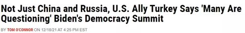 美国盟友土耳其说,不仅是中国和俄罗斯,许多人都在质疑拜登“民主峰会”。来源:新闻周刊