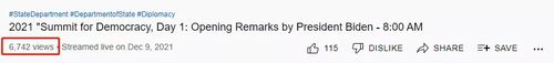 油管上的“民主峰会”点击率仅为6742次。来源:油管