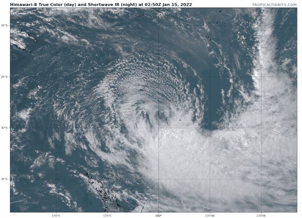 多个气象卫星拍到火山爆发的图片,场面震撼人心。图片来源:tropicaltidibits