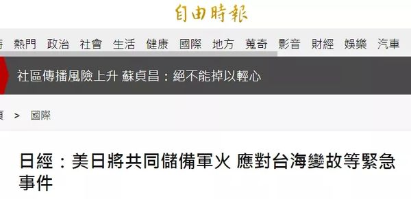 《自由时报》也炒作称,美日此举是“应对台海变故等紧急事件”。