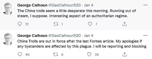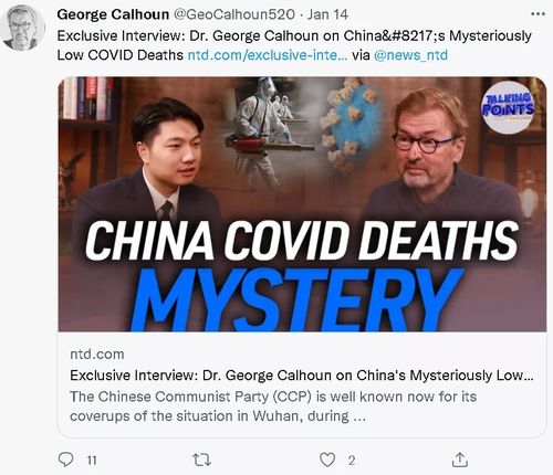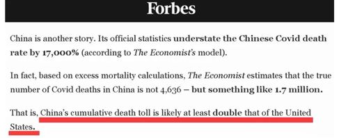 此前,他先是于1月2日在美国福布斯网站上发表了他的第一篇文章,引用英国《经济学人》杂志推出的一个很不严谨、就连不少西方学者都认为设计有问题的“大数据模型”,用一种近乎是在“刻舟求剑”的方式,用美国新冠死亡人数“模拟”出了中国“应有”的新冠死亡人数,然后以此宣称中国的实际死亡人数为170万人,而不是中国官方通报的不到5000人的死亡人数。