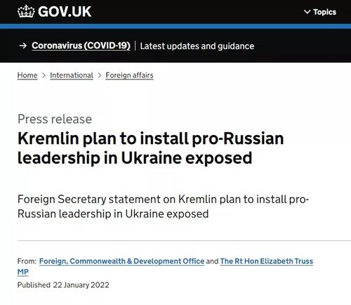 俄外交部表示:“英国外交部散布的虚假信息是另一个证据,表明正是由以盎格鲁-撒克逊人为首的北约,让乌克兰的紧张局势升级。”