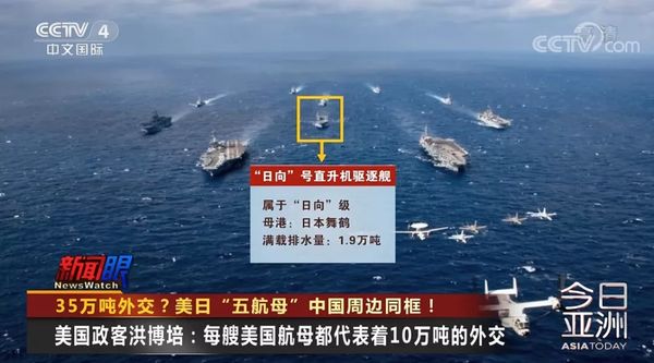 日本自卫队出动的直升机驱逐舰“日向”号是“日向”级首舰,满载排水量1.9万吨,母港位于日本舞鹤。 先后担任过美国驻中国和驻俄罗斯大使的美国政客洪博培曾经形容,每艘美国航母都代表着10万吨的外交。而算上为航母护航的巡洋舰和驱逐舰,参加此次美日“五航母”演练的舰艇吨位总数达到34.6万吨。