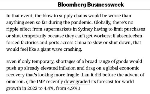 “你希望能继续买到东西吗?你想继续从中国买东西,不用担心短缺或价格上涨吗?那么,你就应该希望中国坚持‘动态清零’的政策”——彭博社的驻北京记者James Mayger,在他的社交账号上推荐他这篇题为“为什么世界需要中国的‘动态清零’政策”一文时,这样写道。