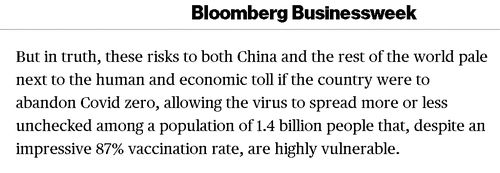 1、虽然其他西方媒体一直在炒作中国“动态清零”政策的“害处“和”风险“,可如果中国不采取这一政策,任由病毒在14亿人中间传播,即便中国的疫苗接种率达到87%,这仍将给中国以及全世界的生命安全和经济稳定带来巨大的危害——而且这些危害,是远远超过“动态清零”政策本身的那些问题的。