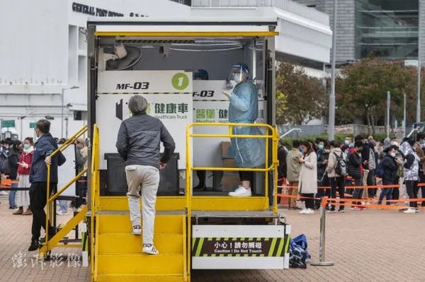 2月9日,香港民众接受核酸检测。图源:澎湃影像