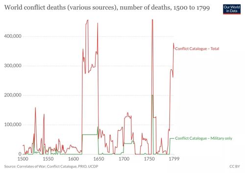 一份始于1500年至1799年间的战争死亡图表。来源:correlates of war